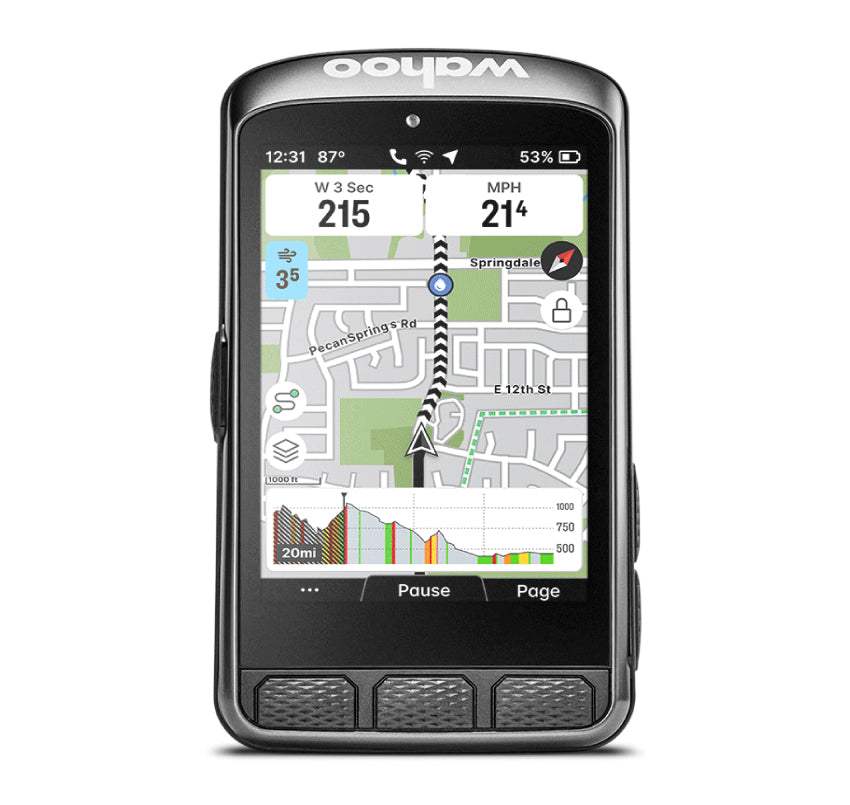 Control at your fingertips: ELEMNT ACE's large, intuitive touchscreen works just like your smartphone, displaying detailed maps and metrics that you can easily control with a press, pinch, or swipe.