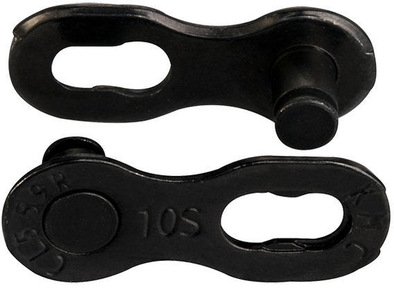 KMC 10 Speed Missing Link Chain Connector is re-usable quick release chain link for use with KMC chain, Shimano chain, and Sram.