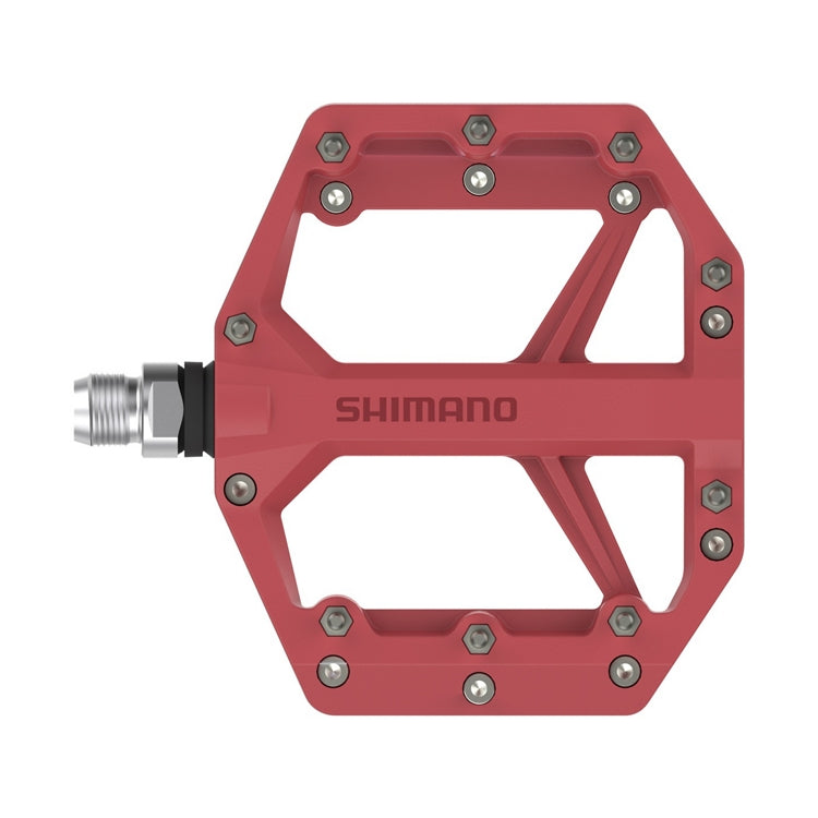 GR400 are grippy flat pedals with a trail riding platform shape that feels stable and secure underfoot. Experience even better bike control by pairing with SHIMANO GR series shoes.